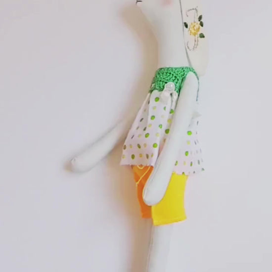 Handmade Stuffed Bunny Doll – 17.7" Personalized Tilda-Style Rag Doll with Hand Embroidered Details